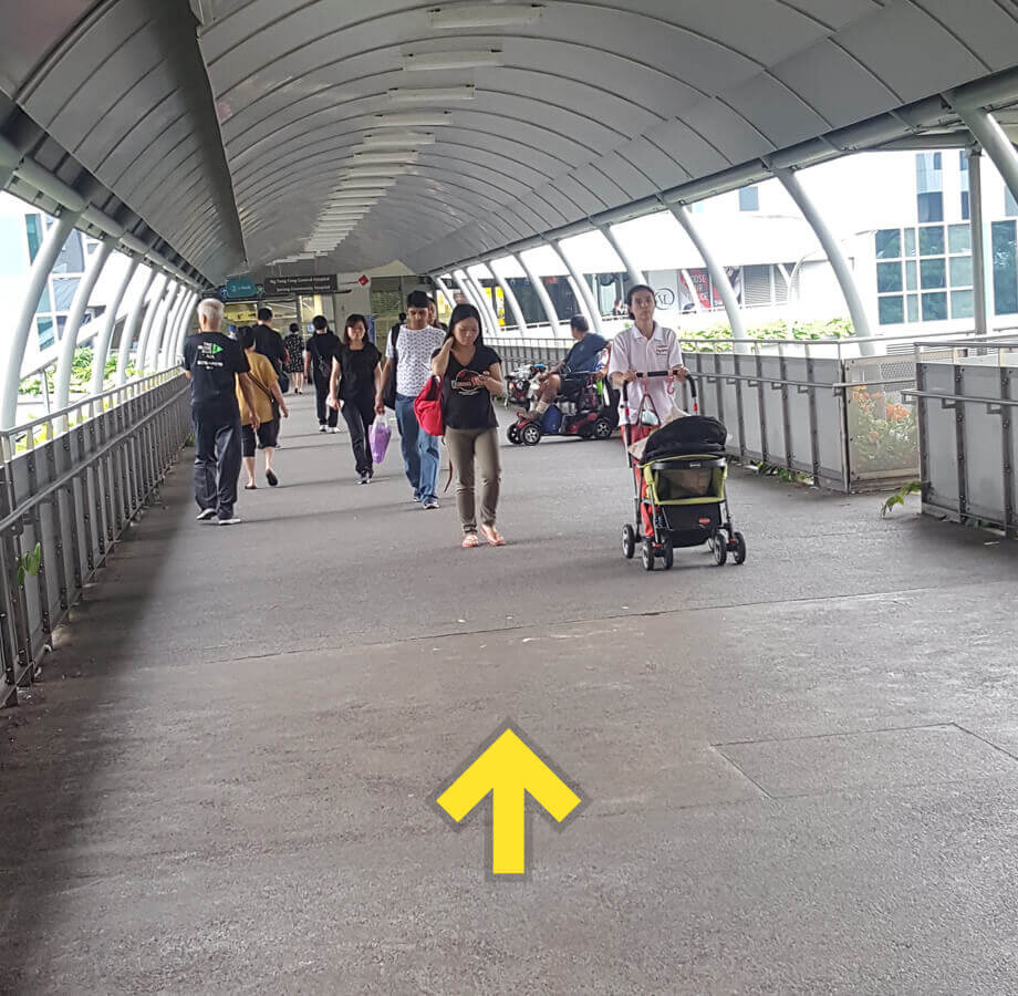Cross the link bridge towards Ng Teng Fong Hospital.