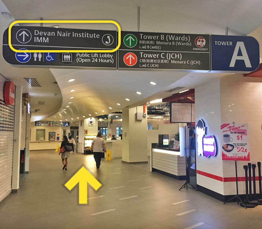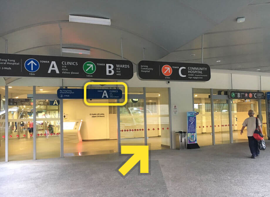 Enter Ng Teng Fong Hospital Tower A and turn right.