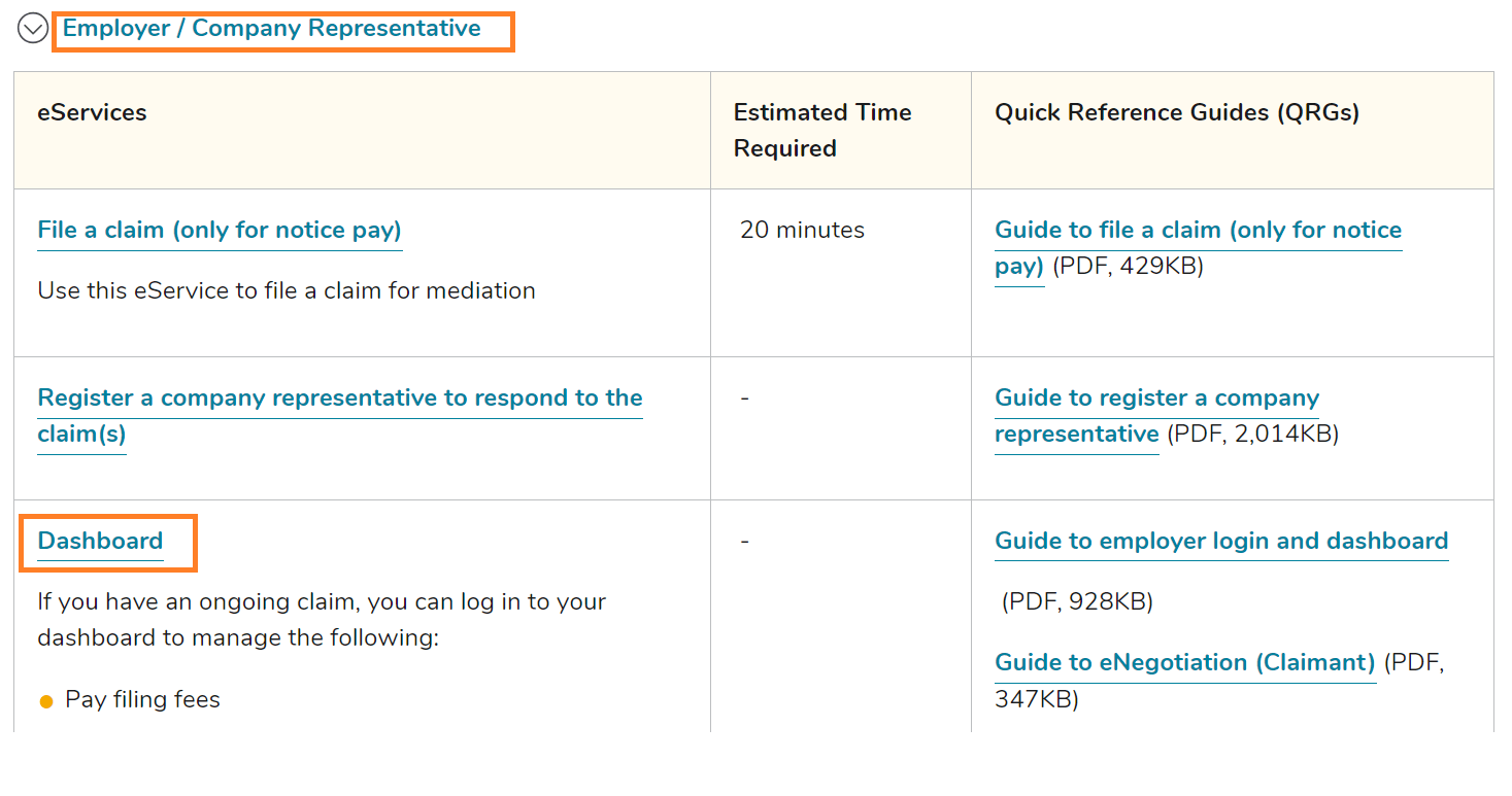 - Select "Employer/Company Representative" and click on "Dashboard".