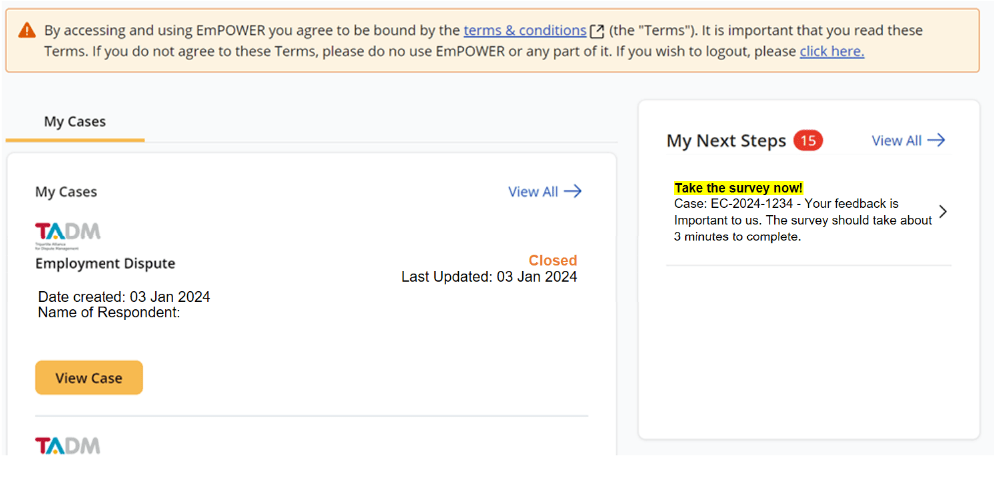 - After you have logged in, view "My Next Steps" on the right and select "Take the survey now!".
