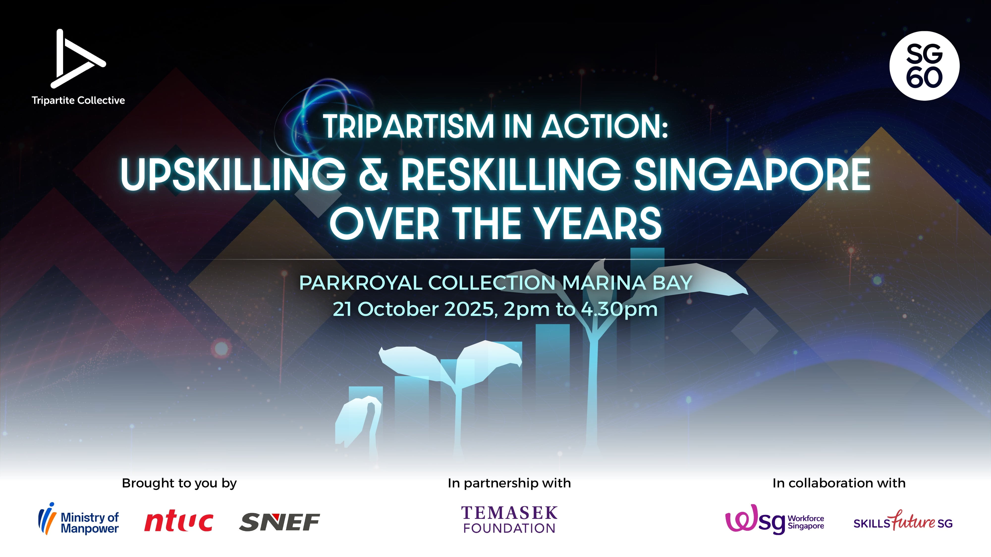 - A case study sharing on “Upskilling & reskilling Singapore over the years” tracing the evolution of skills development policies through six decades of tripartite collaboration, marking Singapore's diamond jubilee with a reflection on our nation's workforce transformation journey.