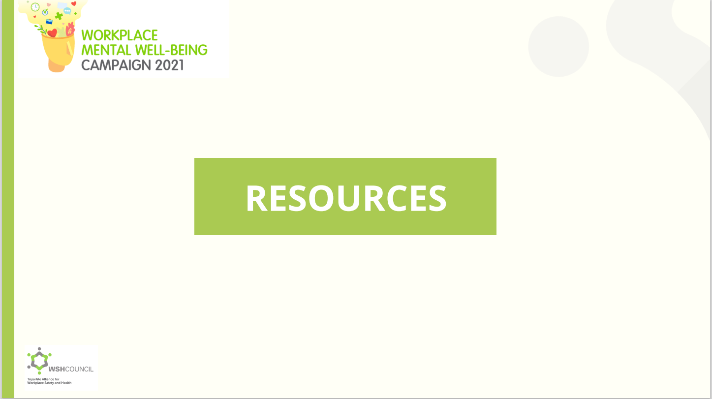 The Campaign will introduce initiatives and resources which can help companies address mental well-being issues at work. Catch the Campaign launch and video as we share how mental resilience can be fostered through the support of everyone in the workplace, from workers and human resource and WSH professionals to the management. This event supports the recent National Mental Well-being Campaign by the Health Promotion Board.