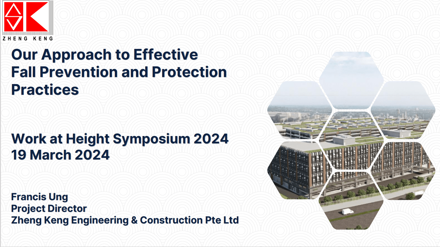• Zheng Keng Engineering & Construction shared about their company’s fall prevention and protection practices, highlighting the integration of WSH technologies to effectively mitigate the risk of incidents.
