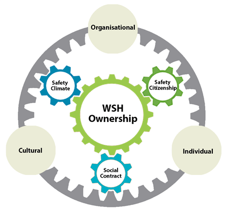 The employee-centric WSH Ownership Model is made up of three levels: individual, cultural and organisational. The three components that drive WSH Ownership are:• Safety Climate: Employees’ shared perceptions towards safety-related policies, procedures and practices.