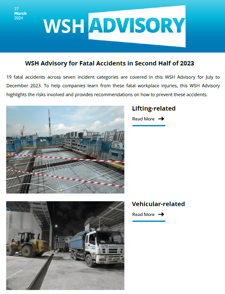 WSH Advisory for Fatal Accidents in Second Half of 2023