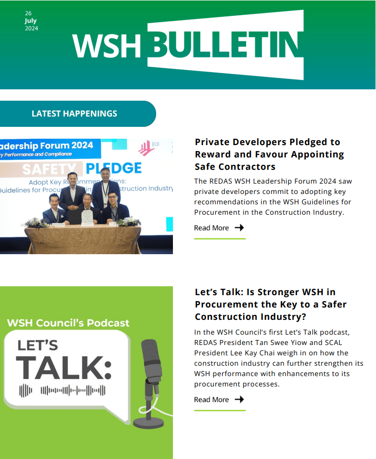 Developers, main contractors and sub-contractors are key stakeholders who can drive positive WSH outcomes through procurement.