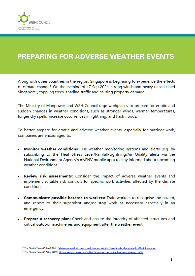 Learn how to manage workplace safety and health (WSH) risks associated with any work activity or trade.